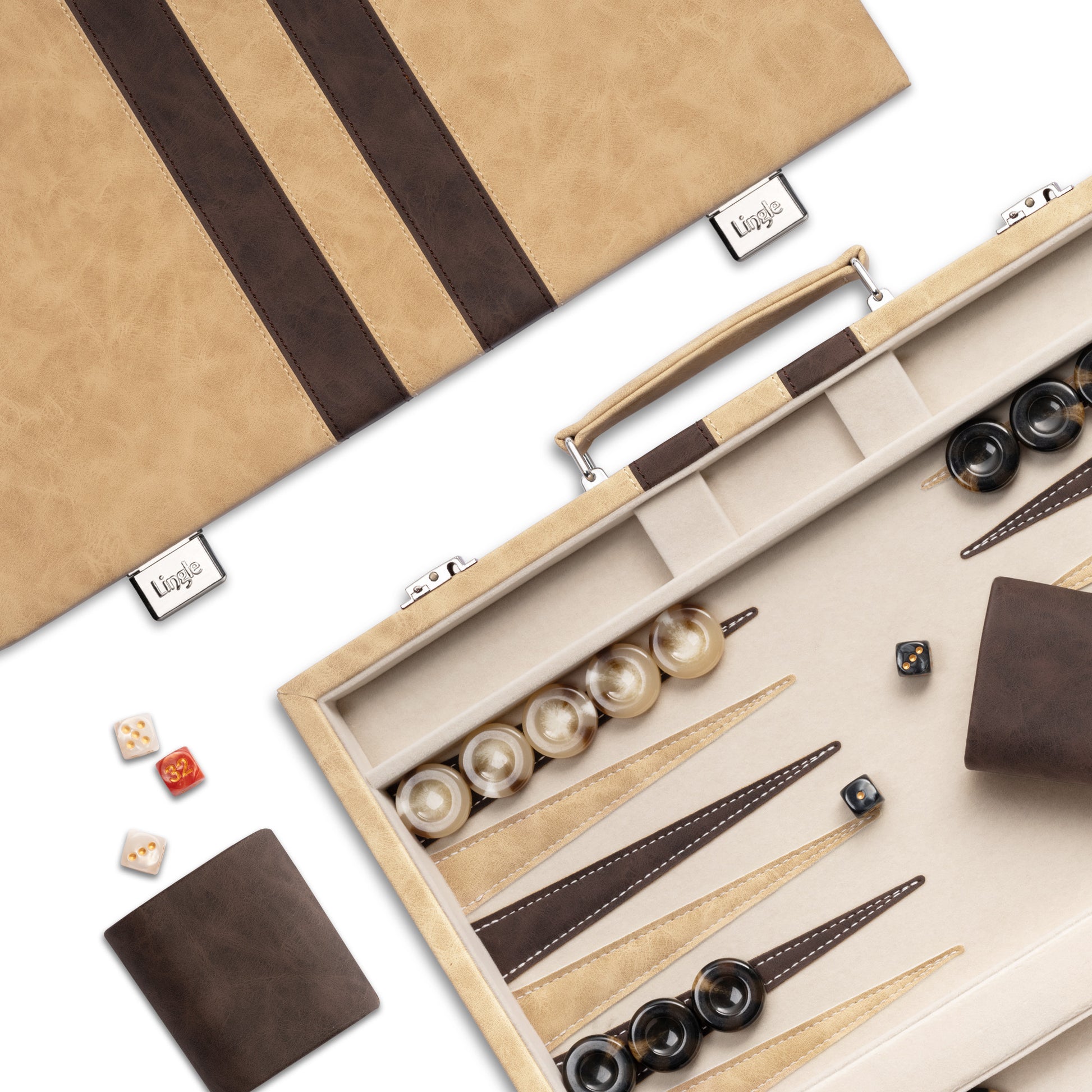 Lingle 15'' Travel Faux Leather Backgammon Game Set